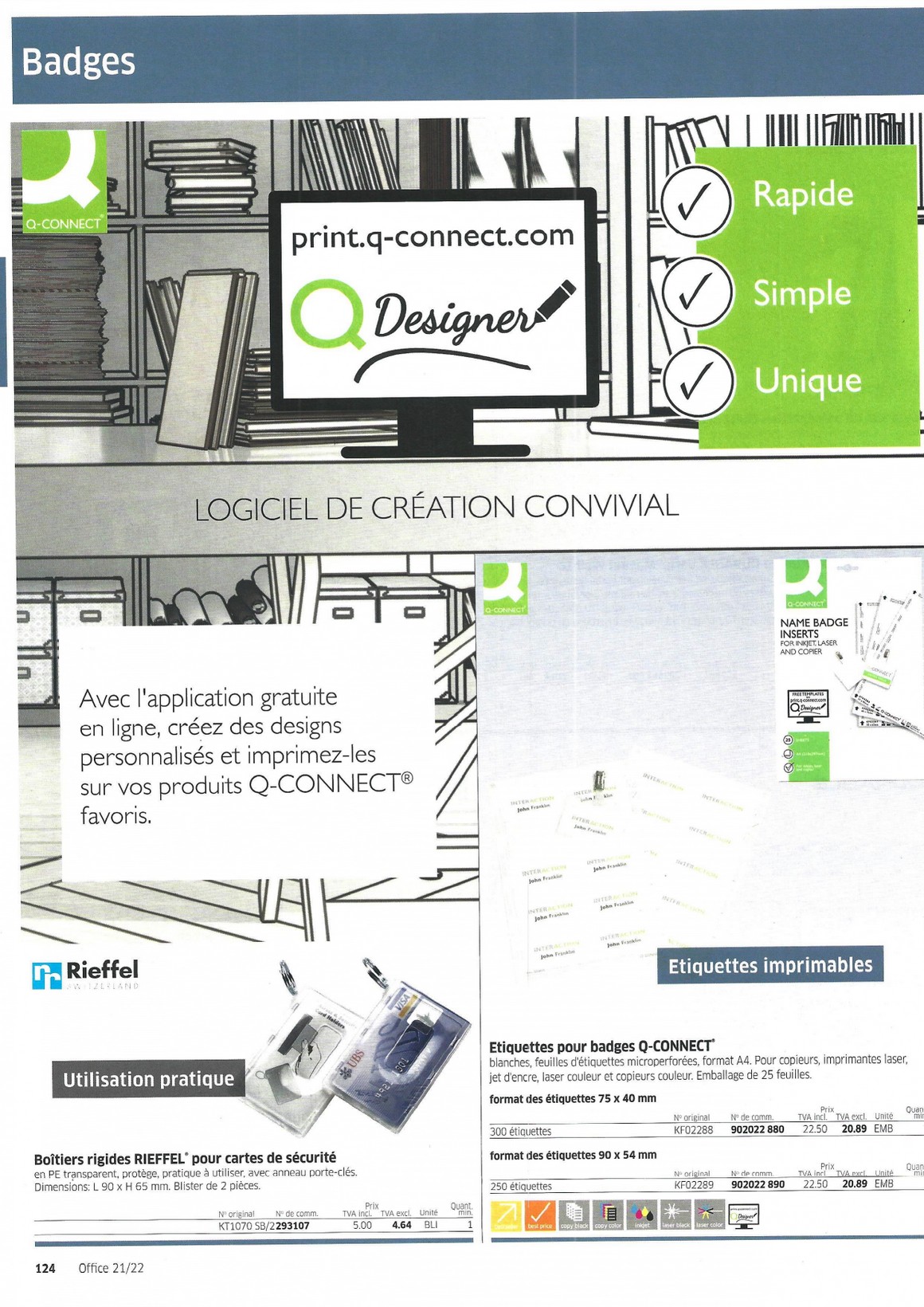 Catalogue 2021-22 > 2 Présentation Etiquetage 92-132 > Badges - Imprimantes 124-132