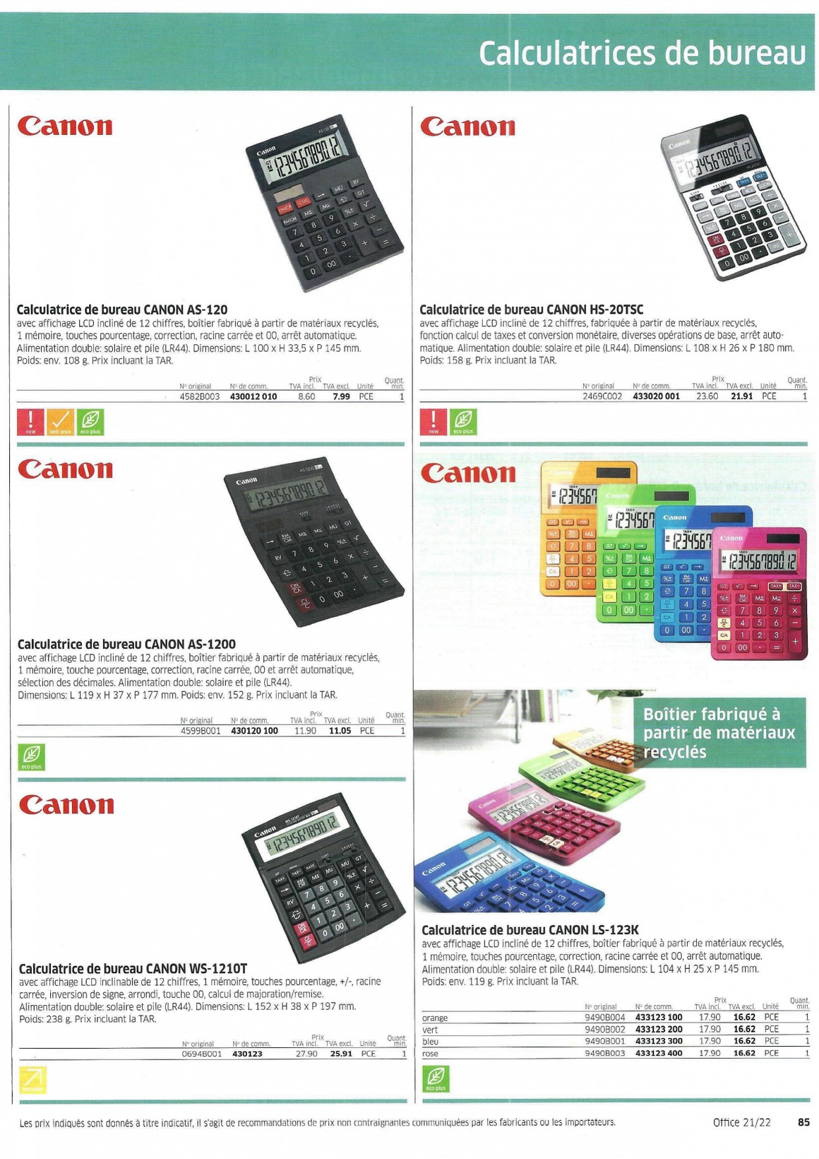 Catalogue 2021-22 > 1 Appareils de bureau Consommables Informatique EDP 10-90 > Calculatrices 84-90
