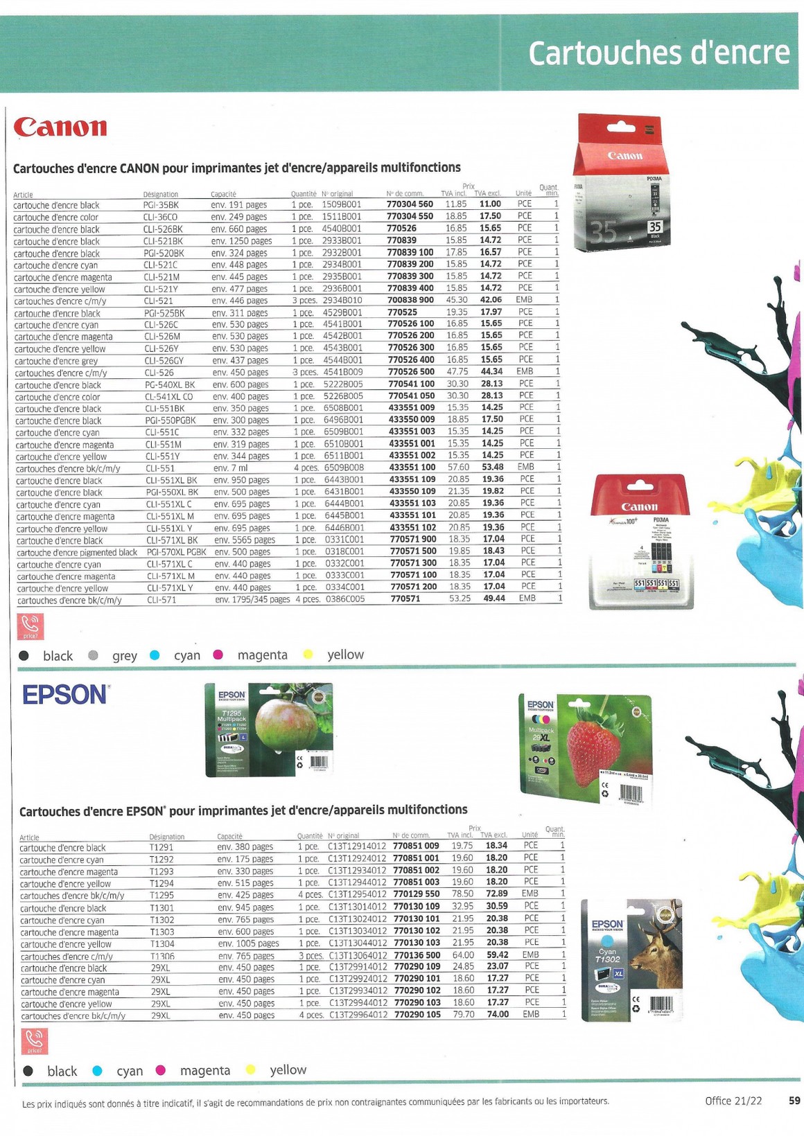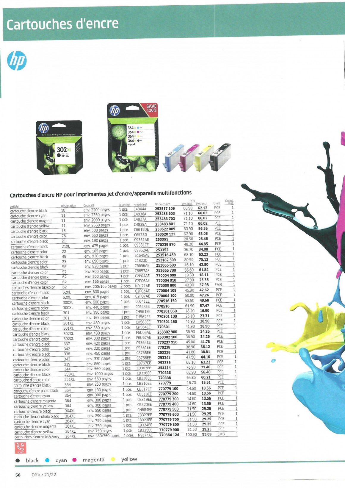 Catalogue 2021-22 > 1 Appareils de bureau Consommables Informatique EDP 10-90 > Cartouches d'encre 56-60