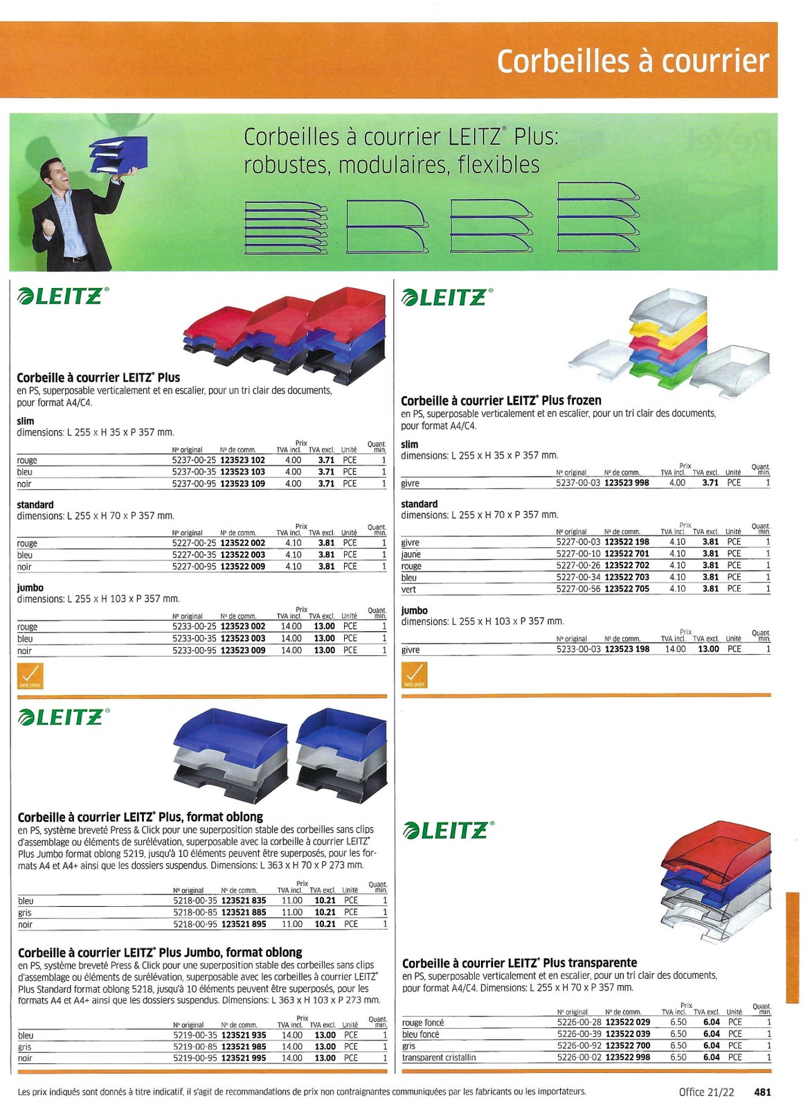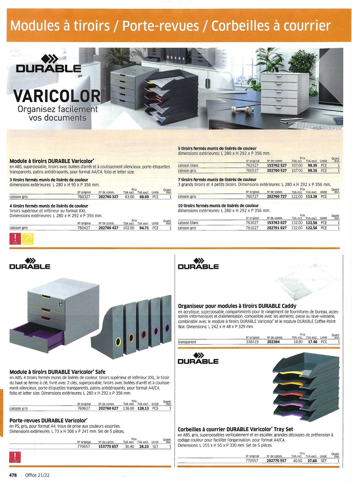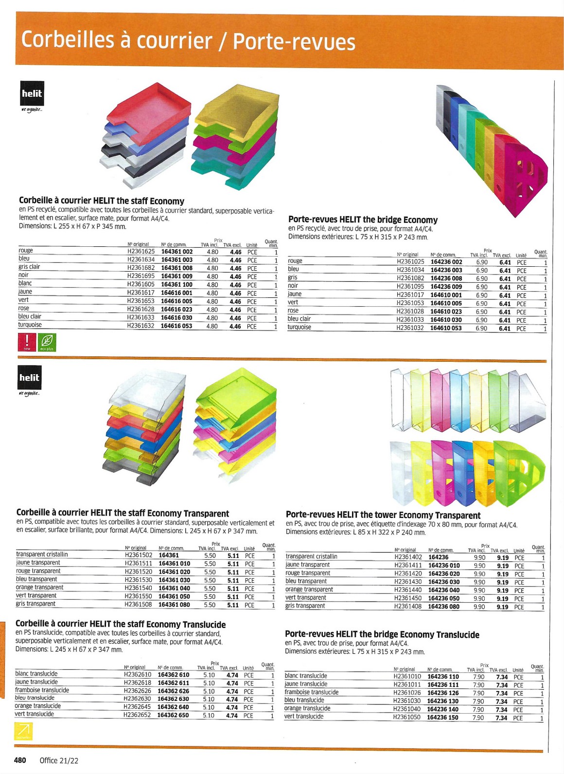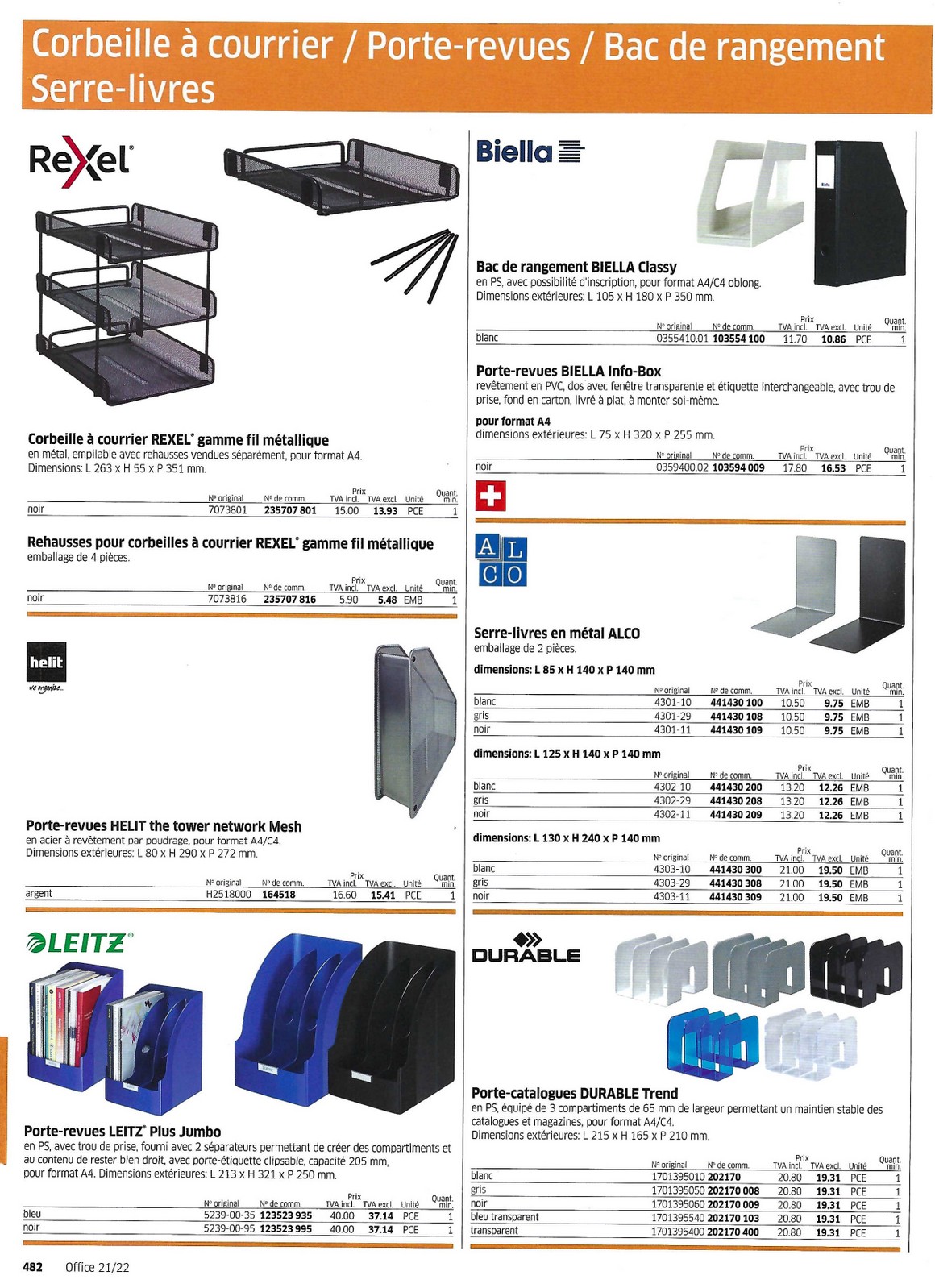 Classements pour le bureau et accessoires 478 à 489