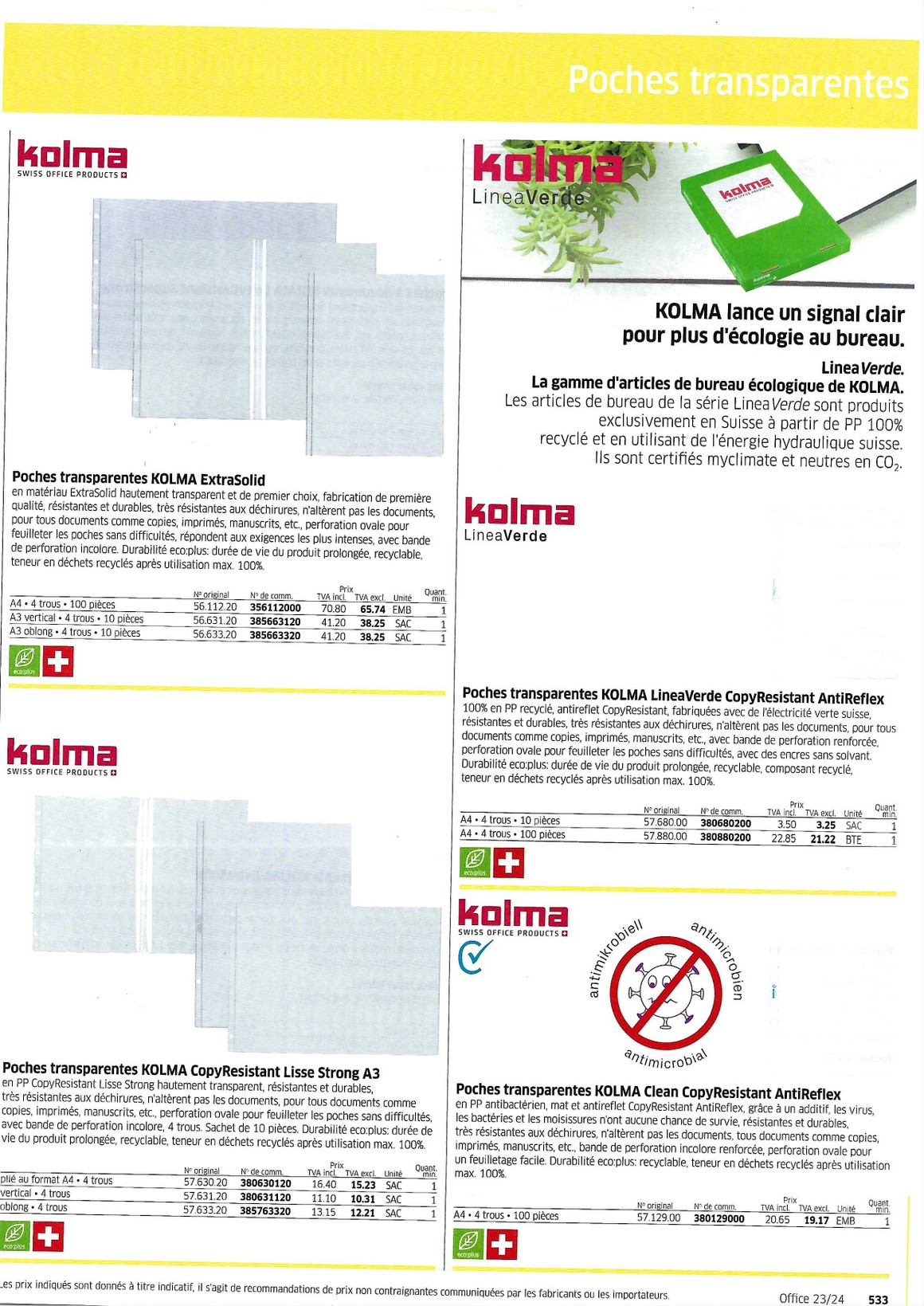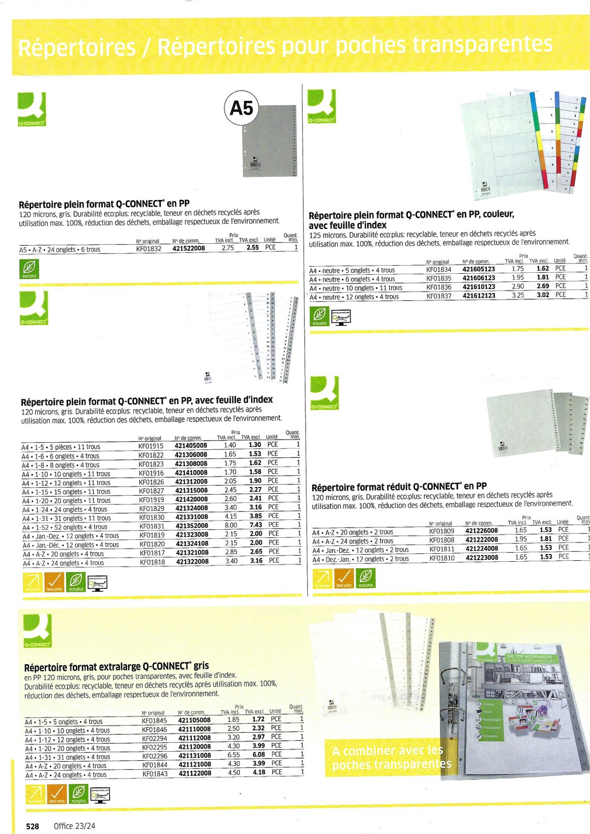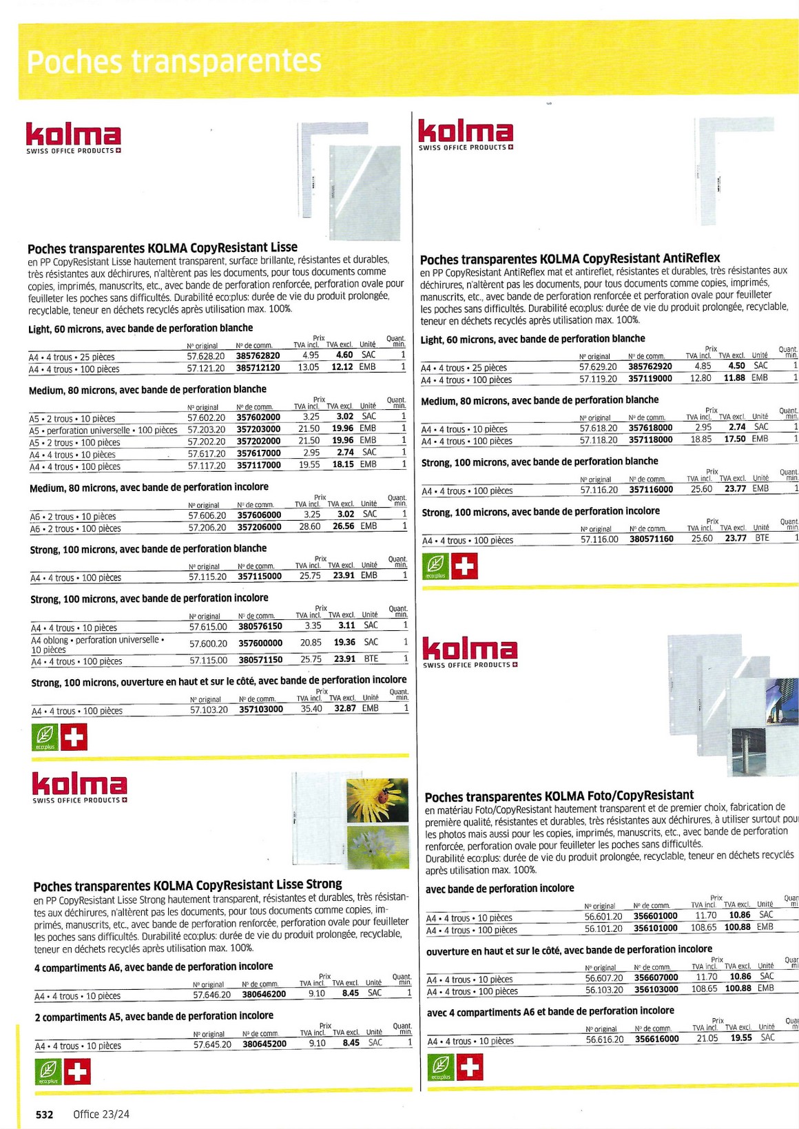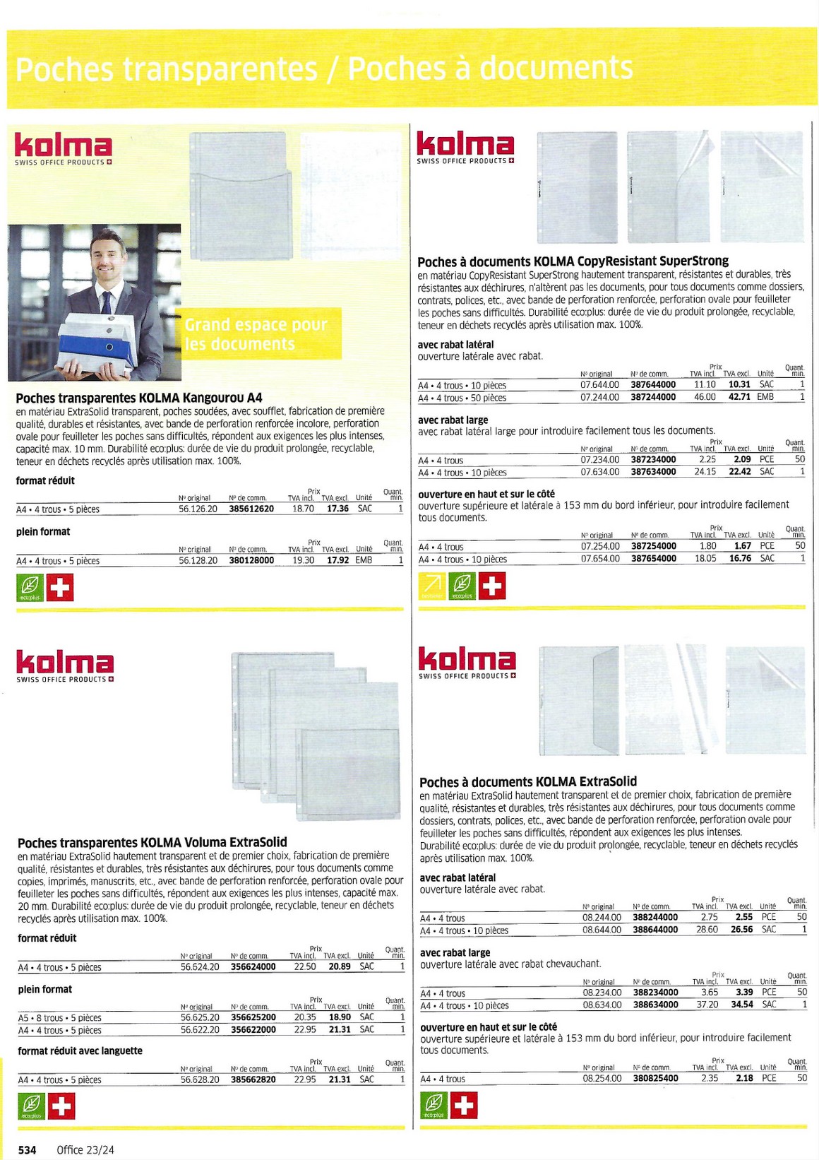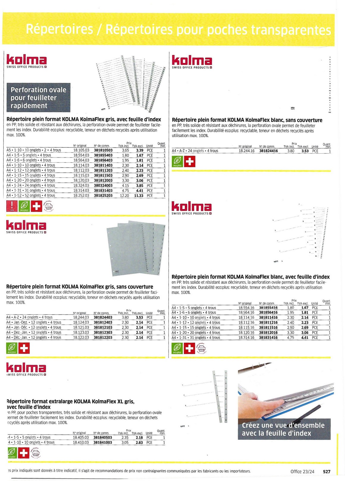 Classeurs Répertoires Poches transparentes 521-534 - Papeterie Schwéry