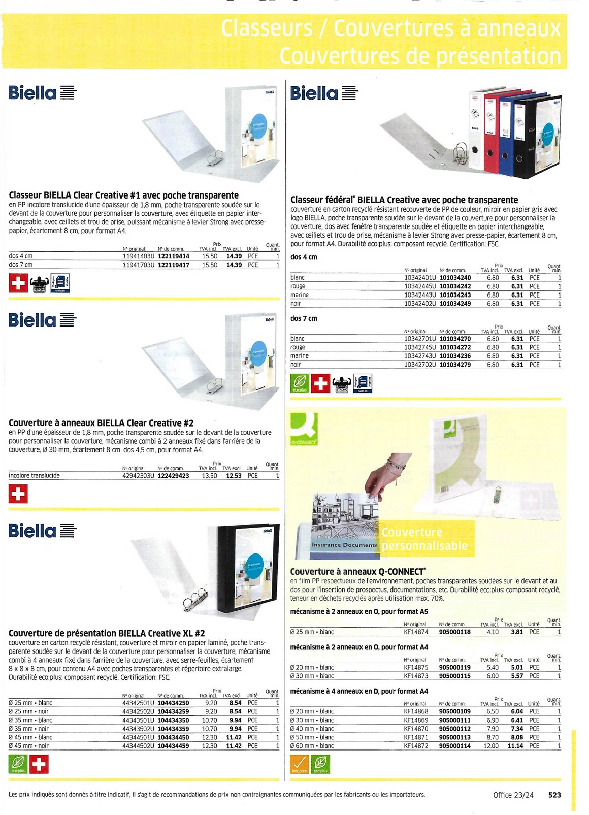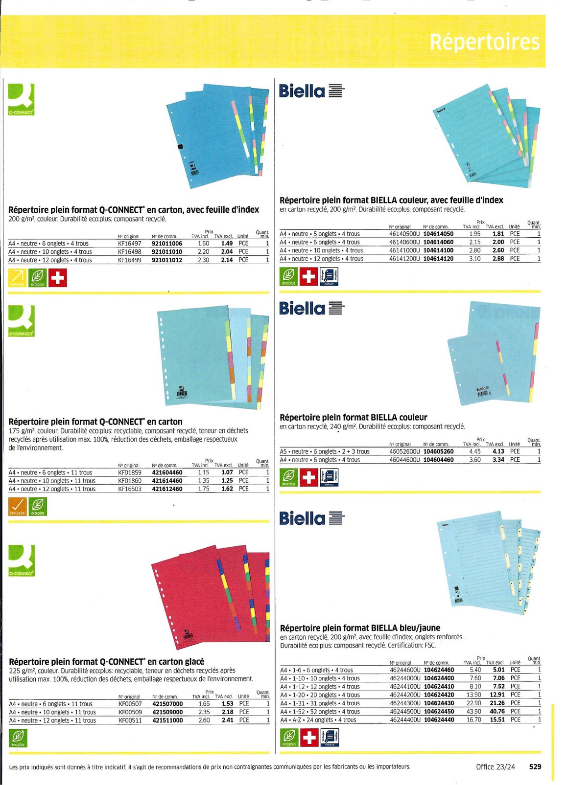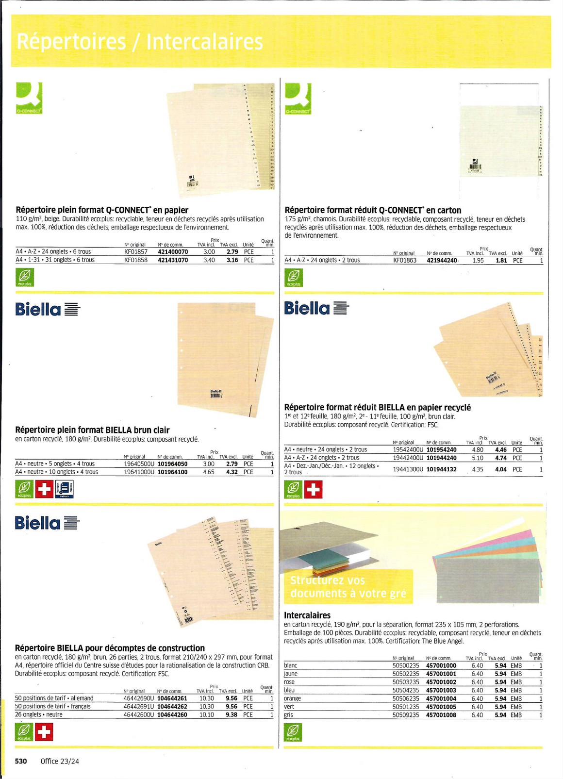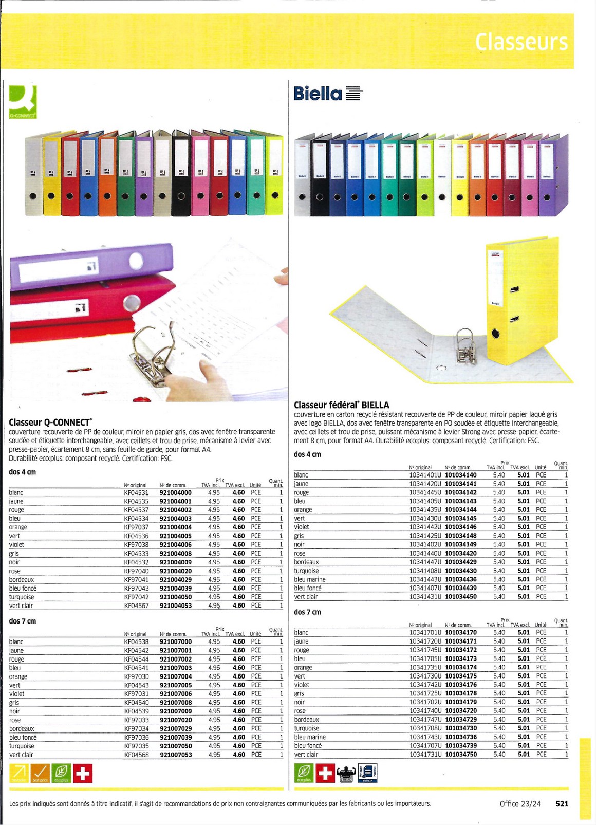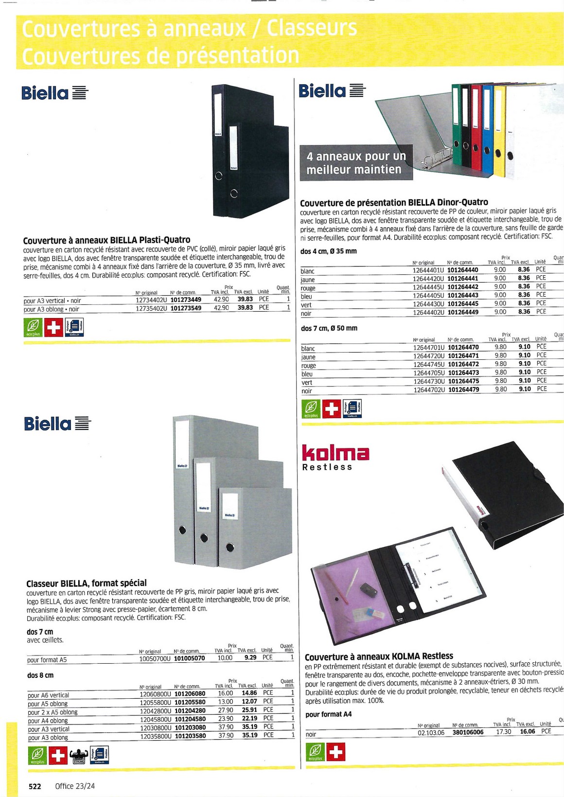 Classeurs Répertoires Poches transparentes 521-534 - Papeterie Schwéry