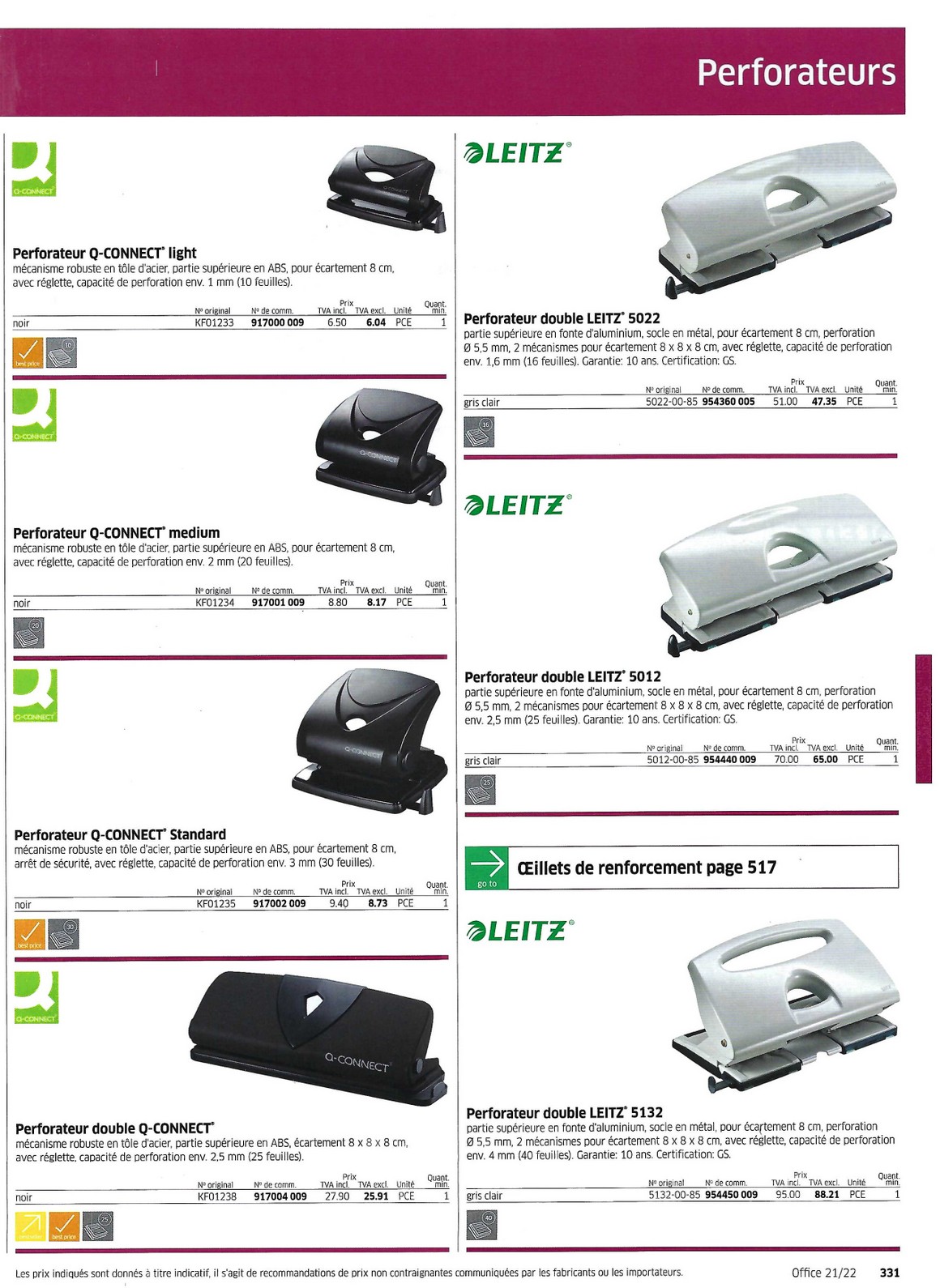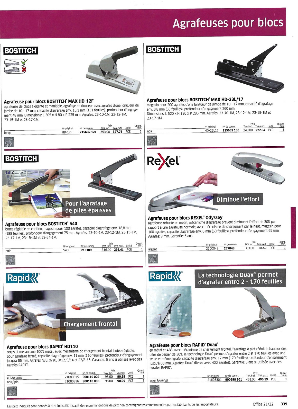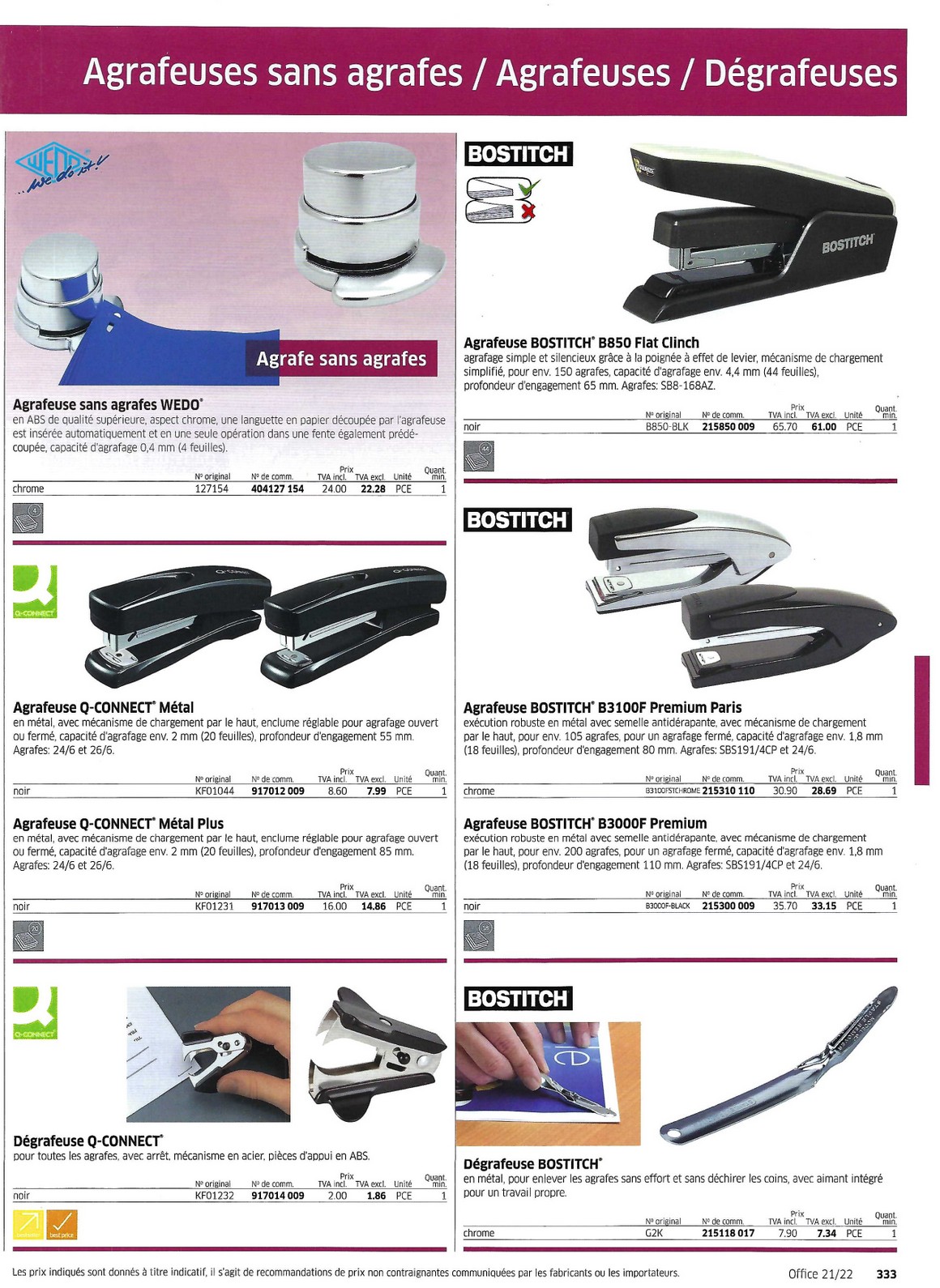 Perforateurs Agrapheuses 328 à 340 - Papeterie Schwéry