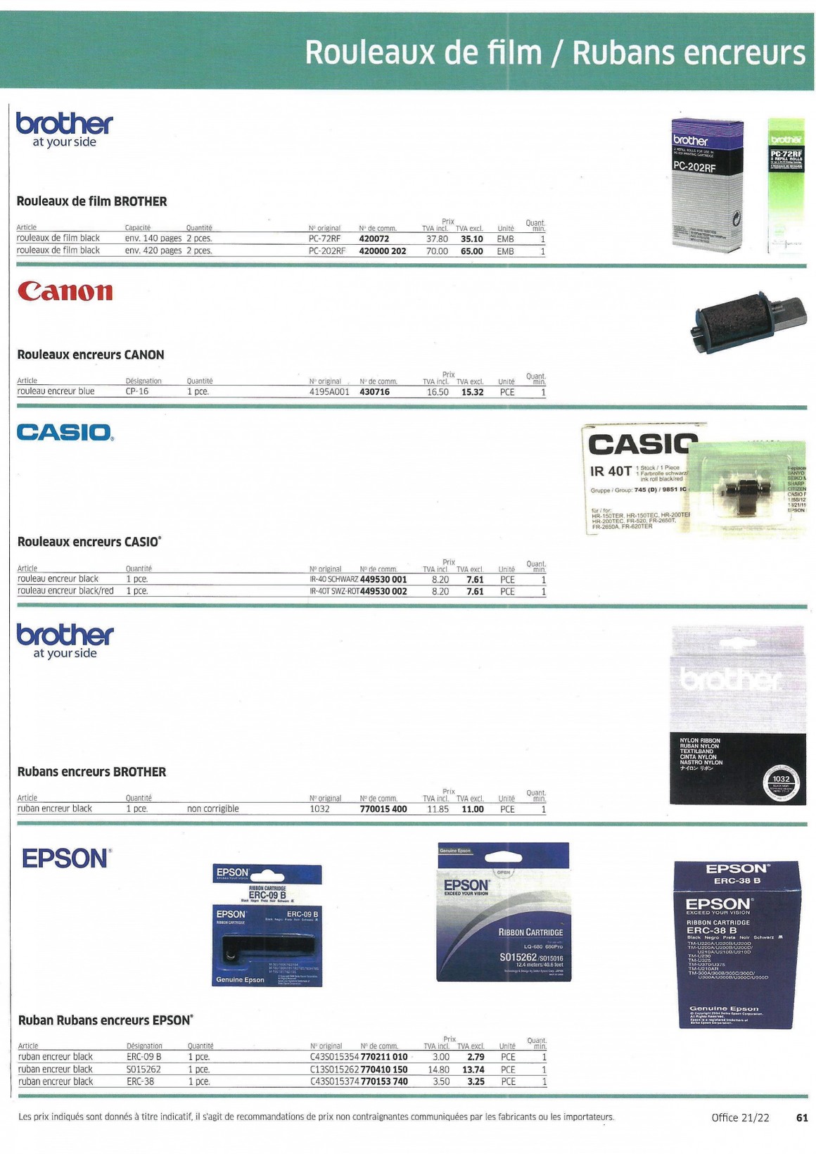 Rouleaux de film - Rubans encreurs 61 - Papeterie Schwéry