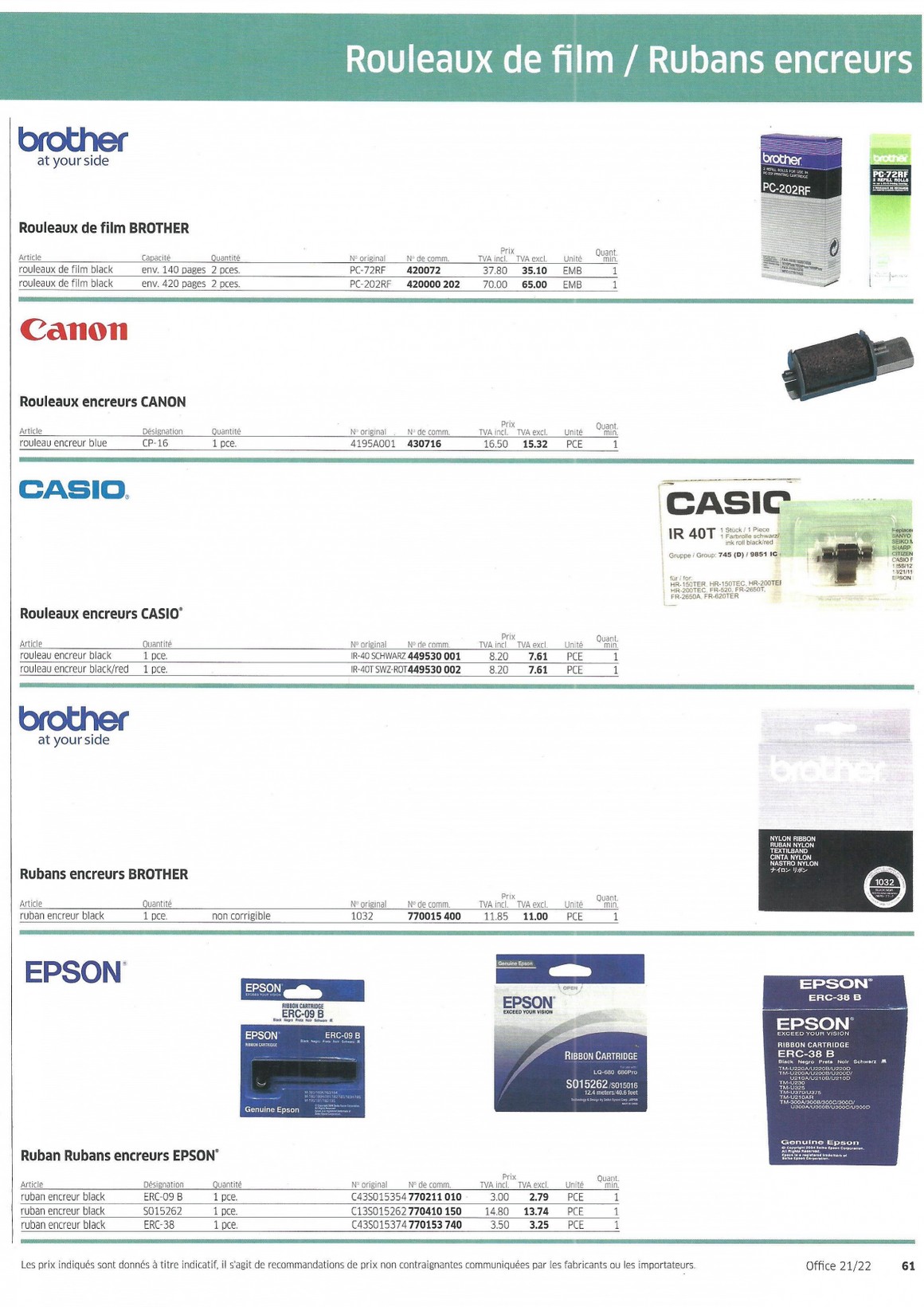 Catalogue 2021-22 > 1 Appareils de bureau Consommables Informatique EDP 10-90 > Rouleaus de film - Rubans encreurs 61