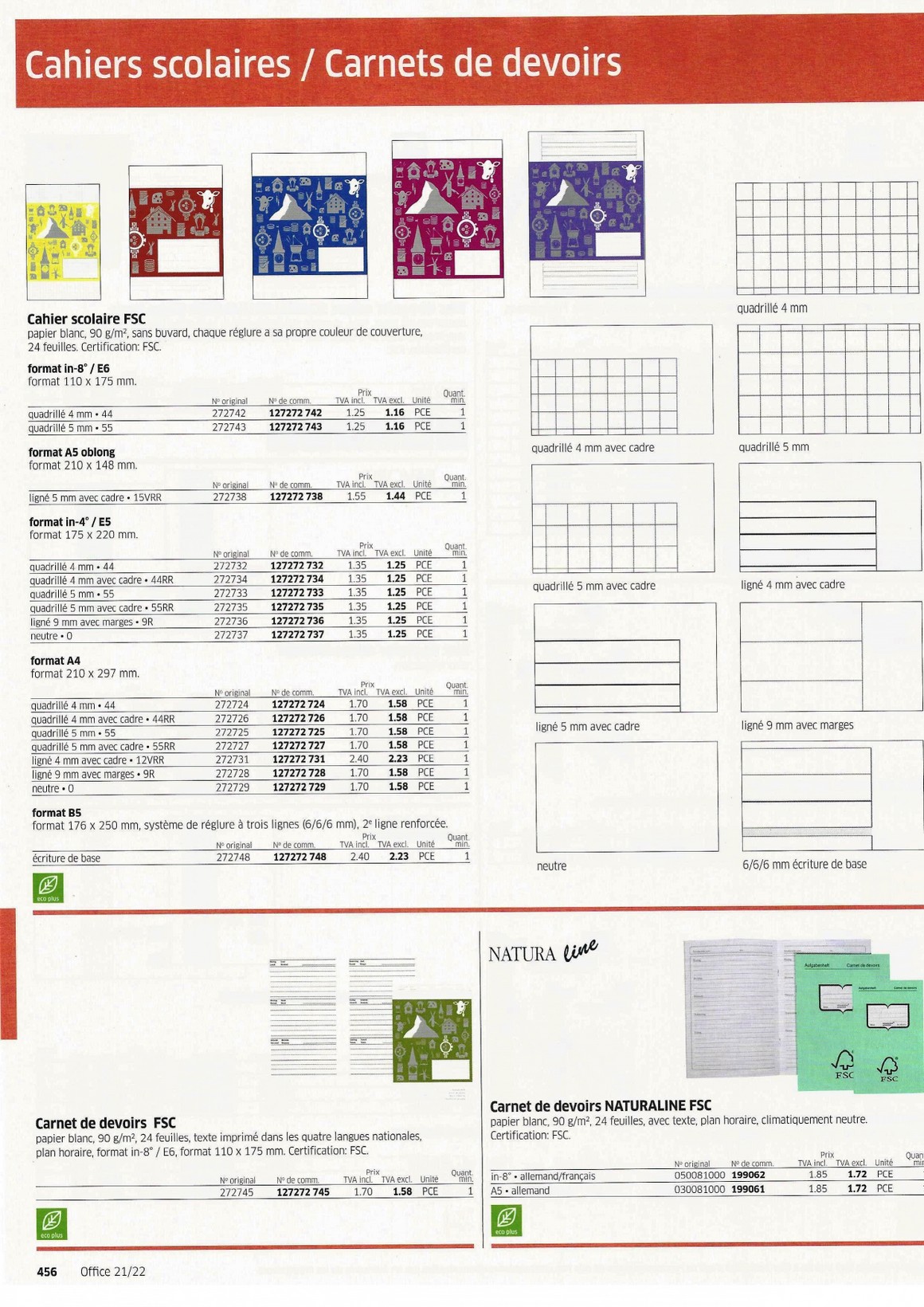 Cahiers scolaires - Films adhésifs 456-462 - Papeterie Schwéry