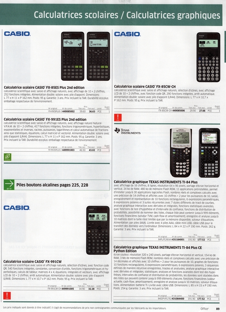 Calculatrices 84-90 - Papeterie Schwéry