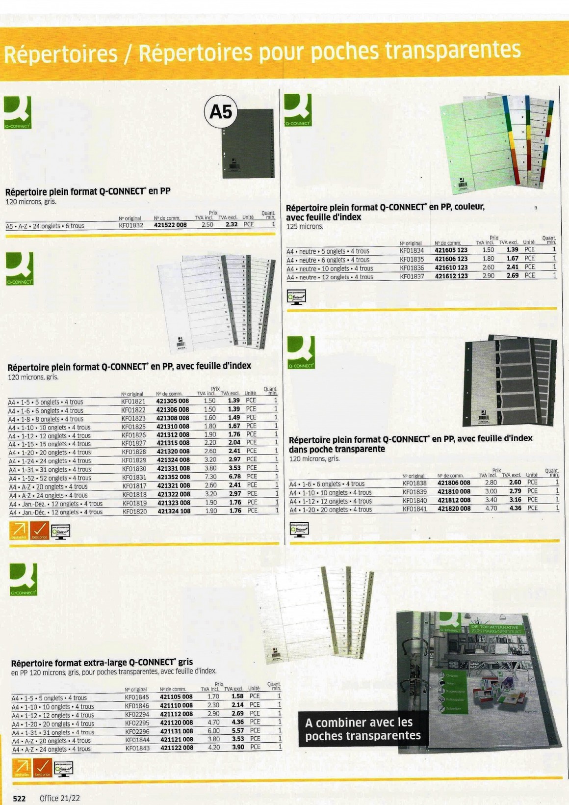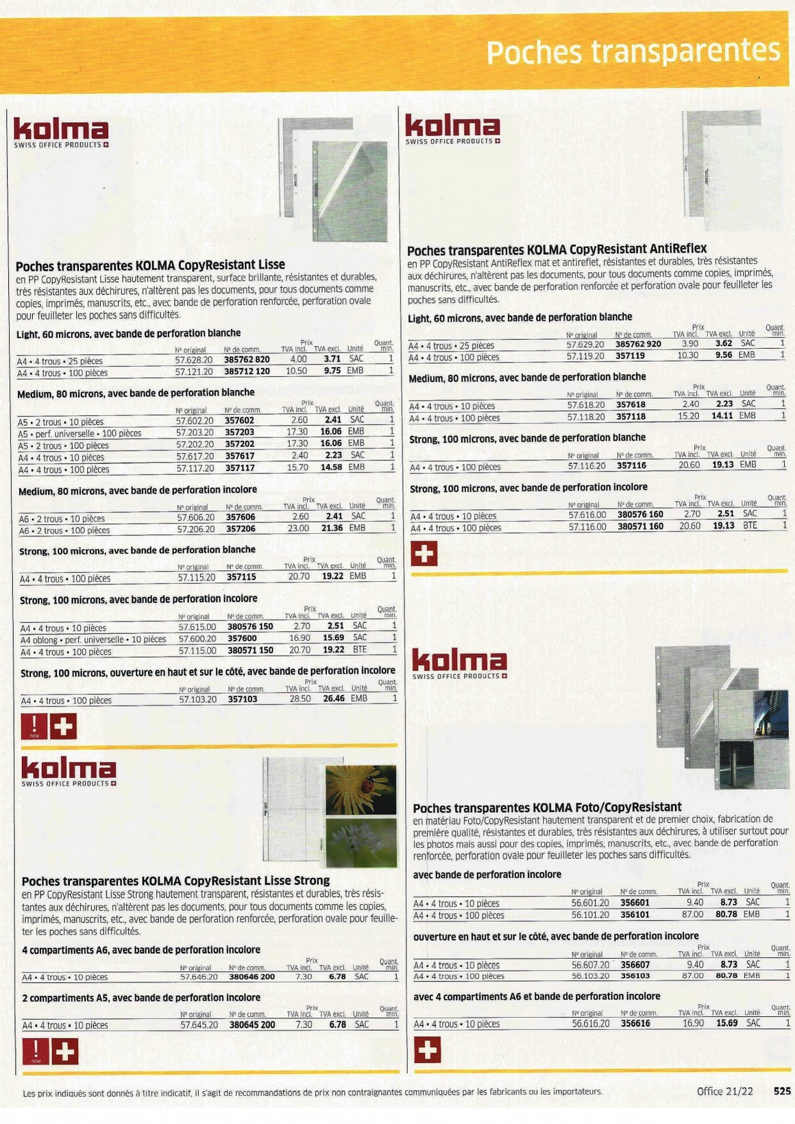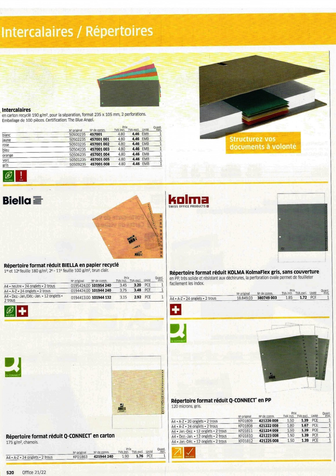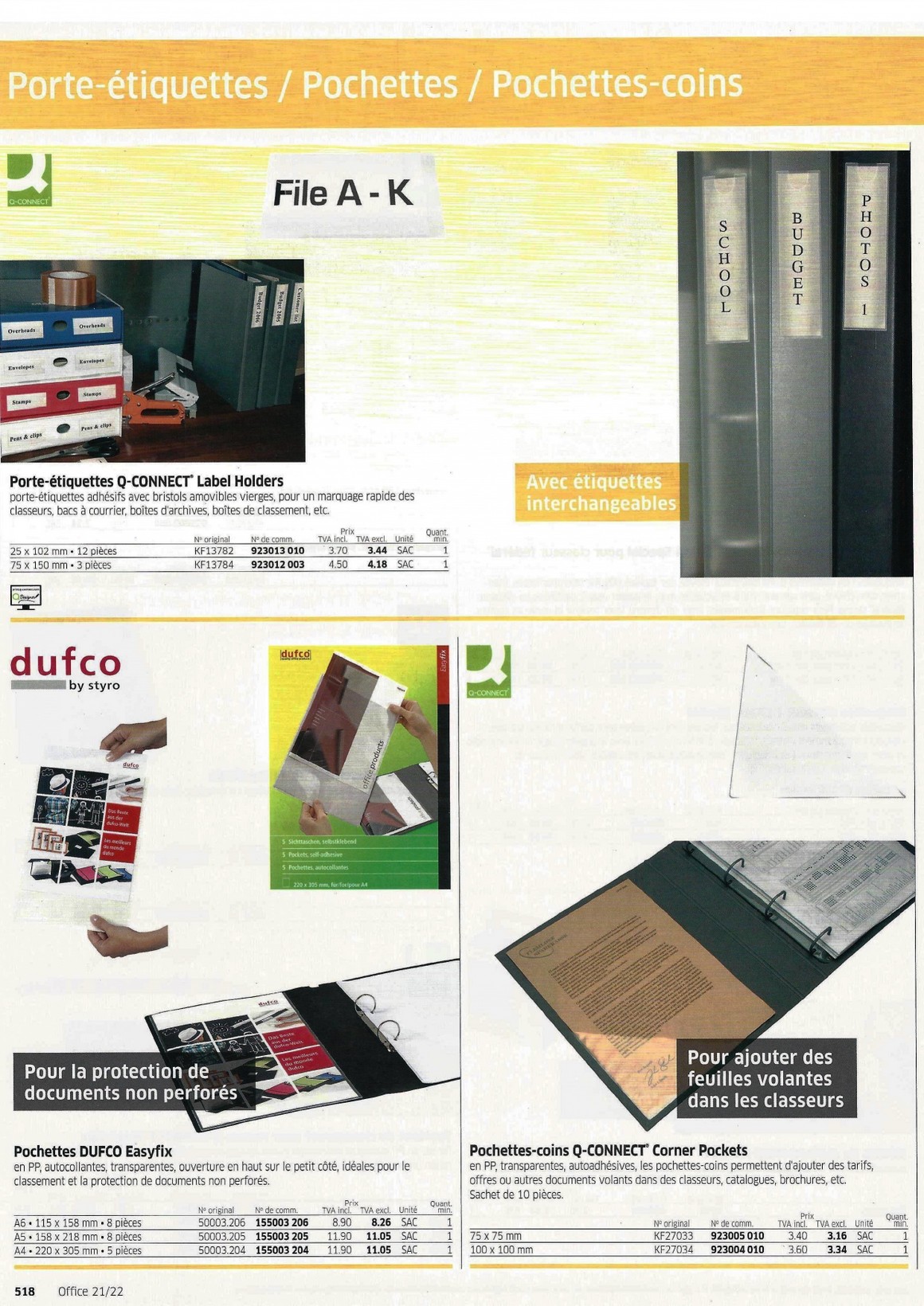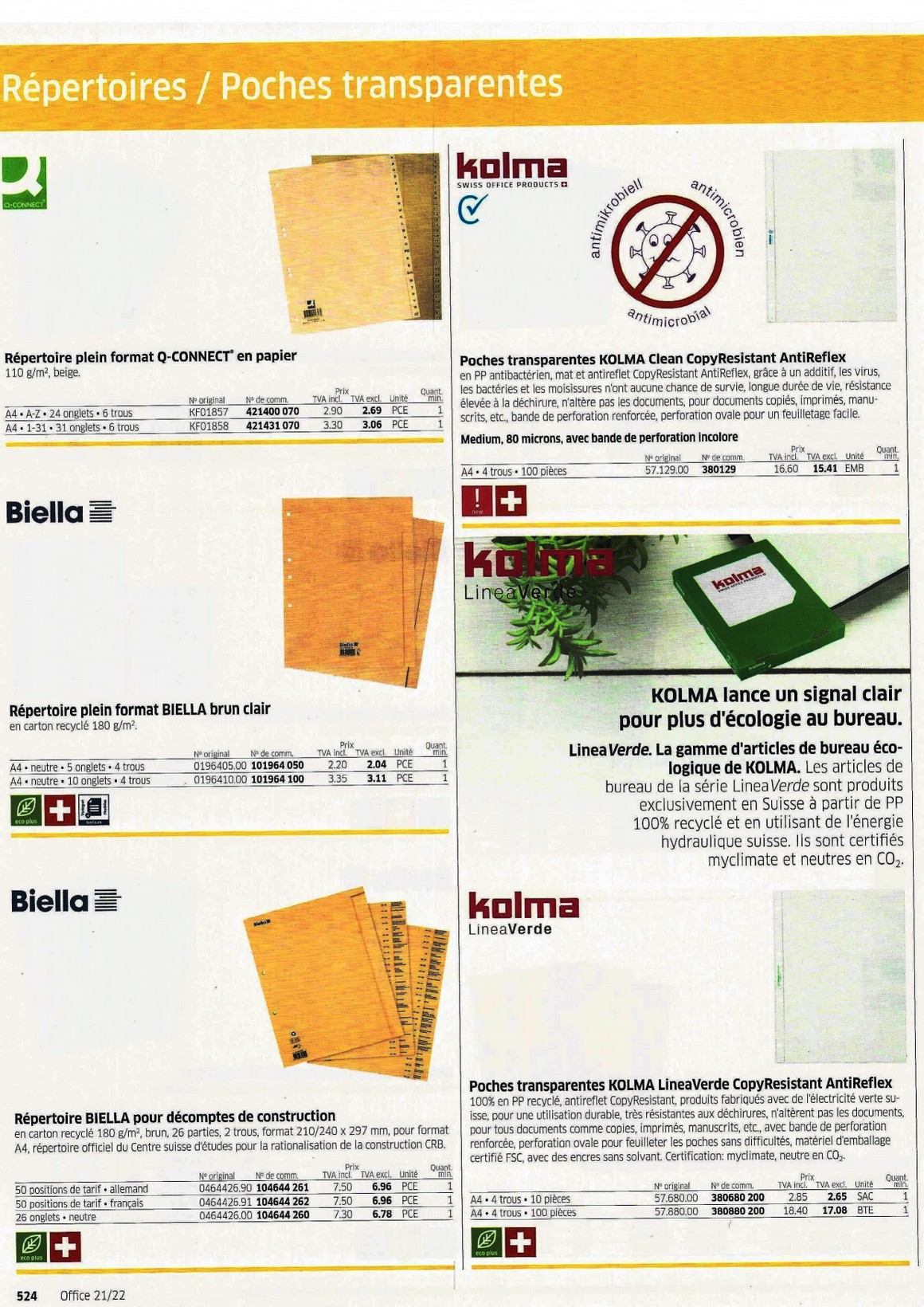 Classeurs - Répertoires - poches transparentes 512-528 - Papeterie Schwéry