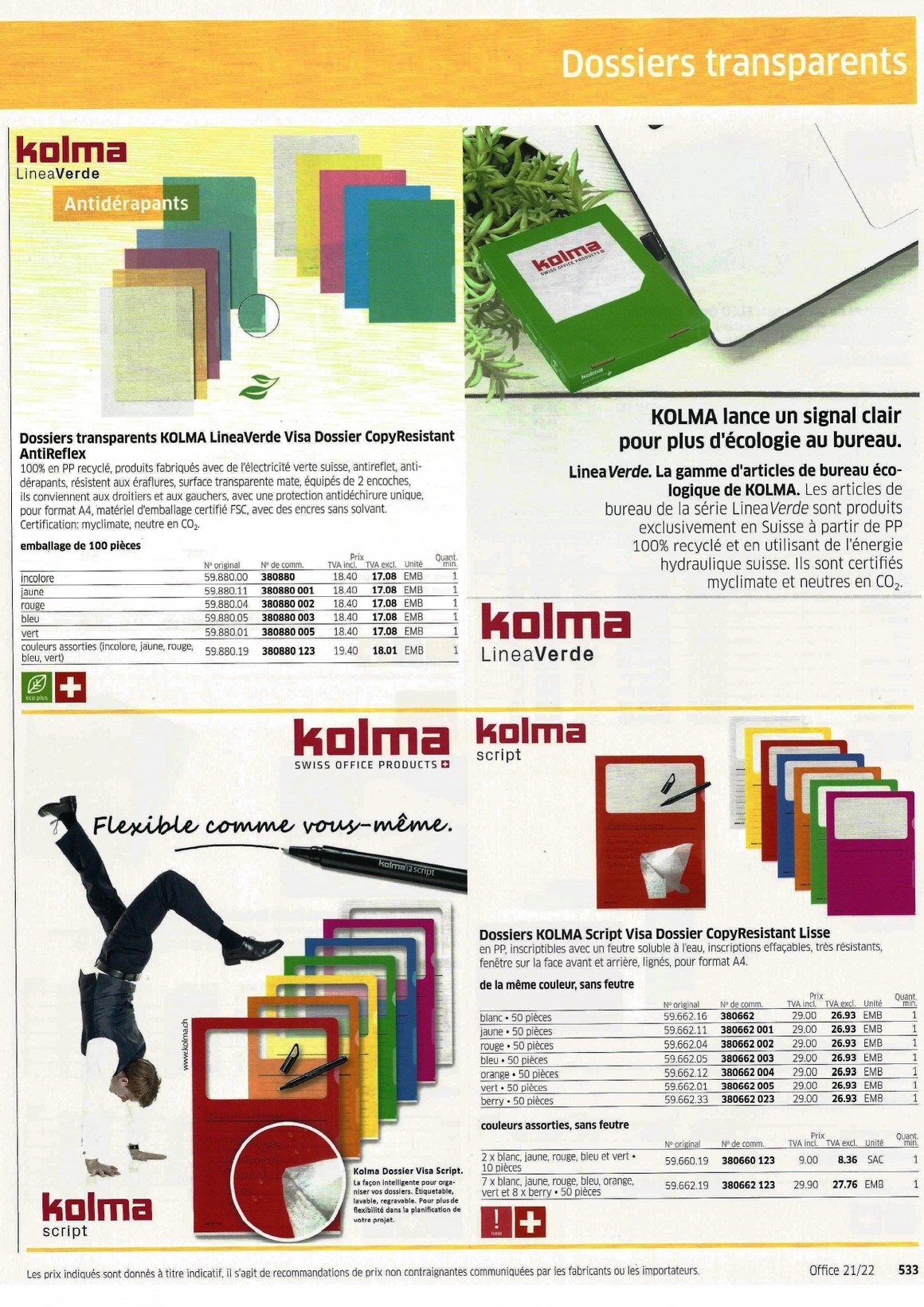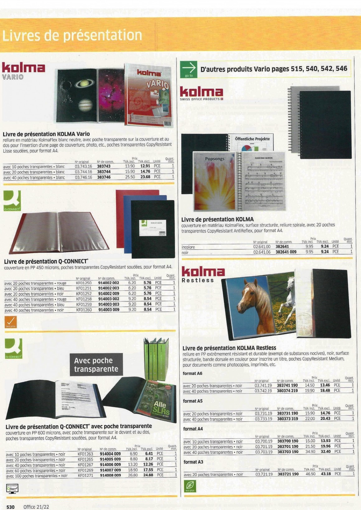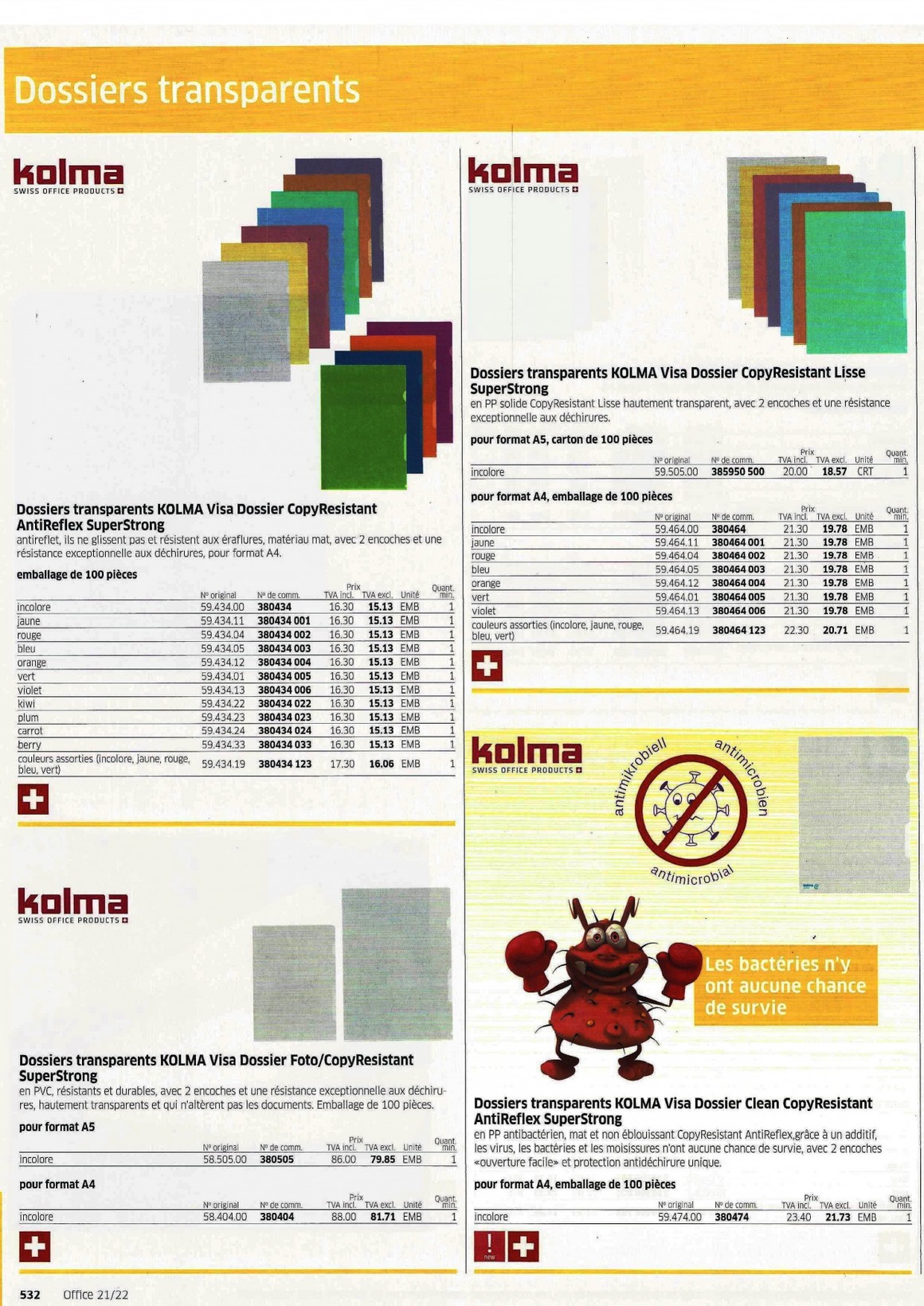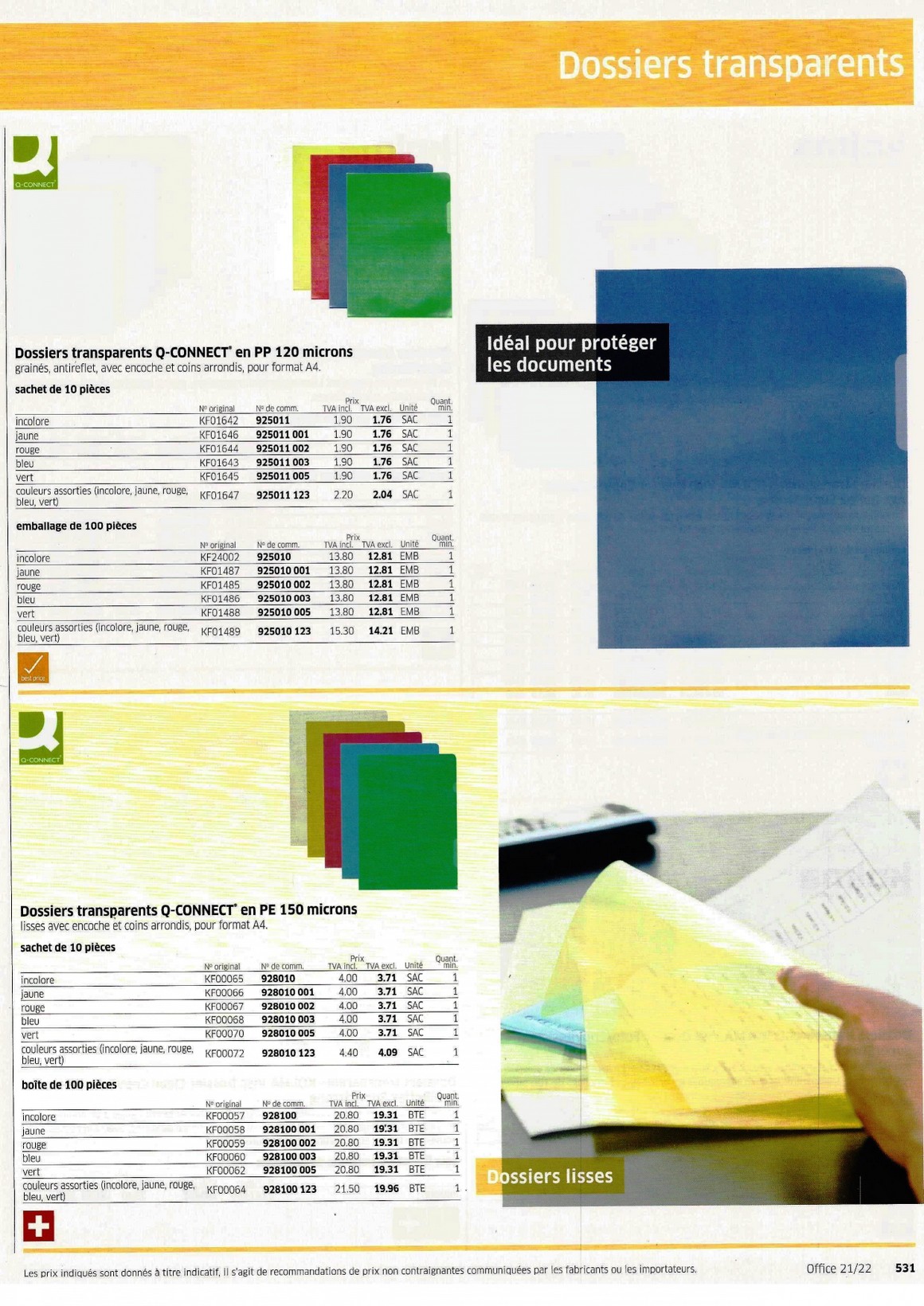 Dossiers transparents -Livres de présentation 529-536 - Papeterie Schwéry