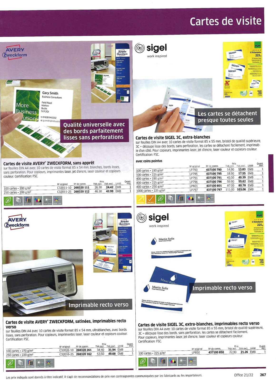Formulaires Cartes de visite 266 à 267 - Papeterie Schwéry